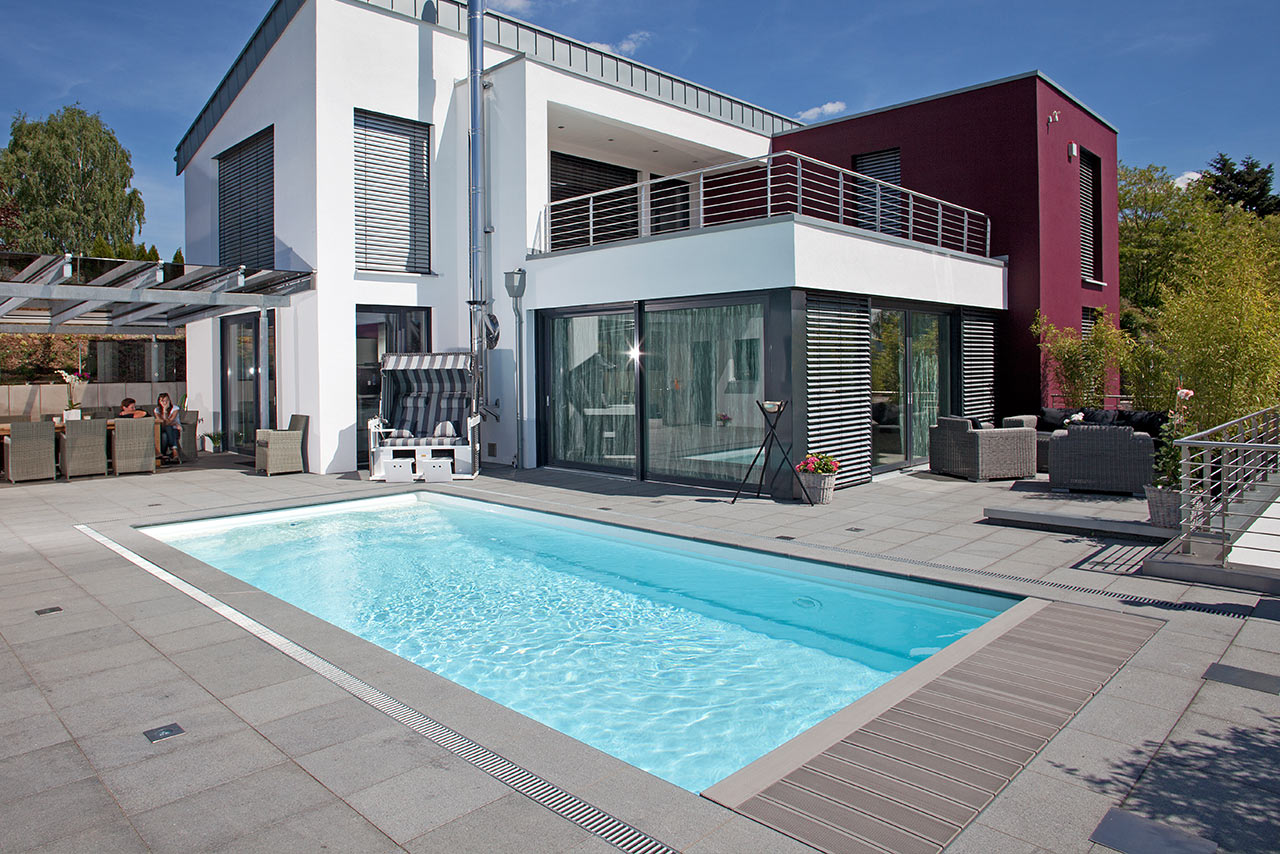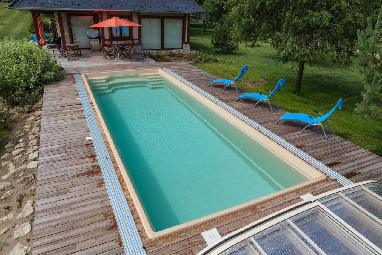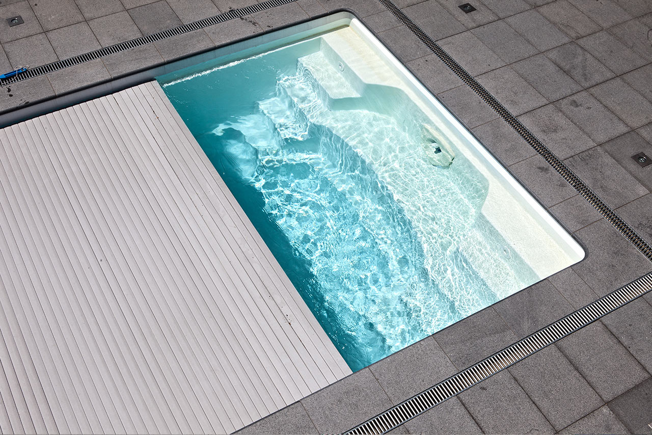 - Polyesterbecken mit oder ohne Unterflurrollo