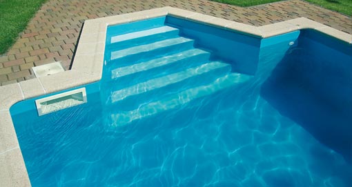Selbst Treppen in Betonpools lassen sich mit Alkorplan-Folien perfekt und garantiert dicht auskleiden. Jetzt müssen Sie nur noch entscheiden, in welcher Farbe das Wasser Ihres betonierten Pools künftig schimmern soll.