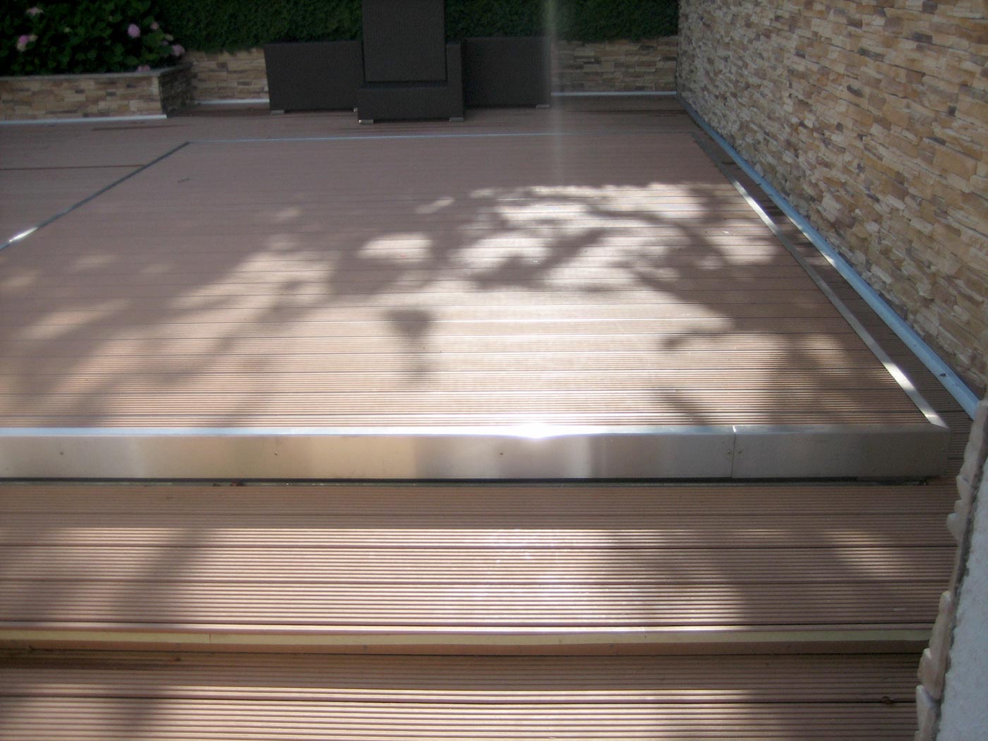 - Pooldeck mit sehr flacher Aufbauhöhe.